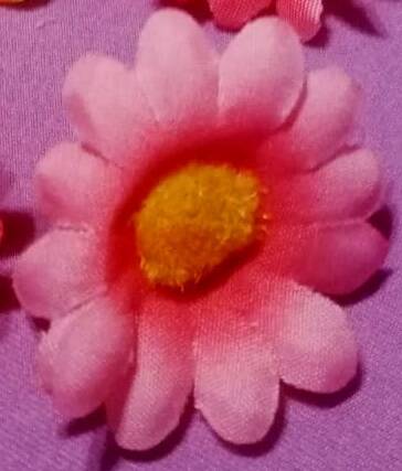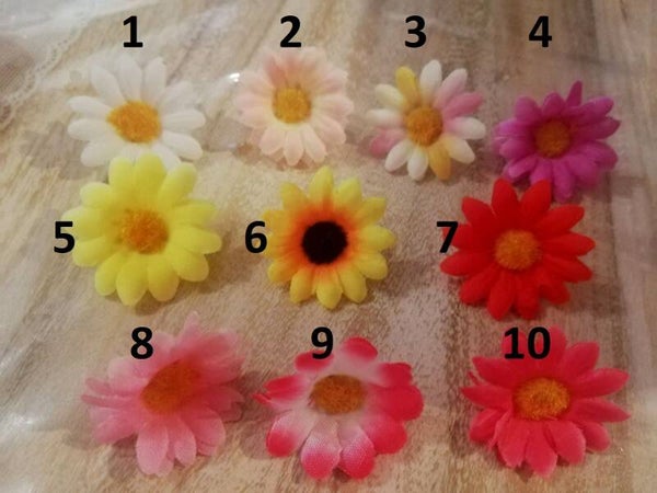 Fiorellini finti di 3,5cm circa + eventuale bastoncino a scelta da 4 o 20cm (vedi opzioni), da usare come decorazione ad es. per torte (Cake / Muffin Topper) o come spiedino per frutta o dolci.