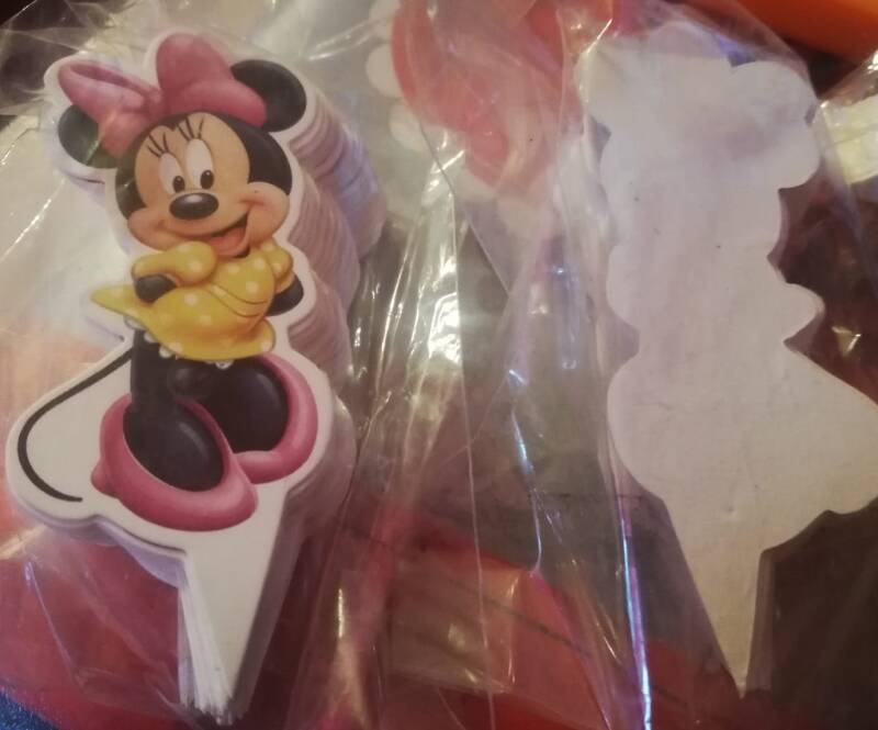 Topper di carta di 3-6cm circa con disegno su entrambi i lati + bastoncino a scelta da 4 o 20cm (vedi opzioni), da usare come decorazione ad es. per torte (Cake / Muffin Topper) o come spiedino per frutta o dolci.