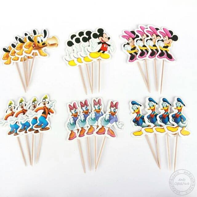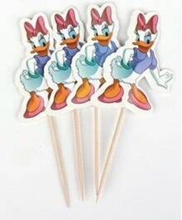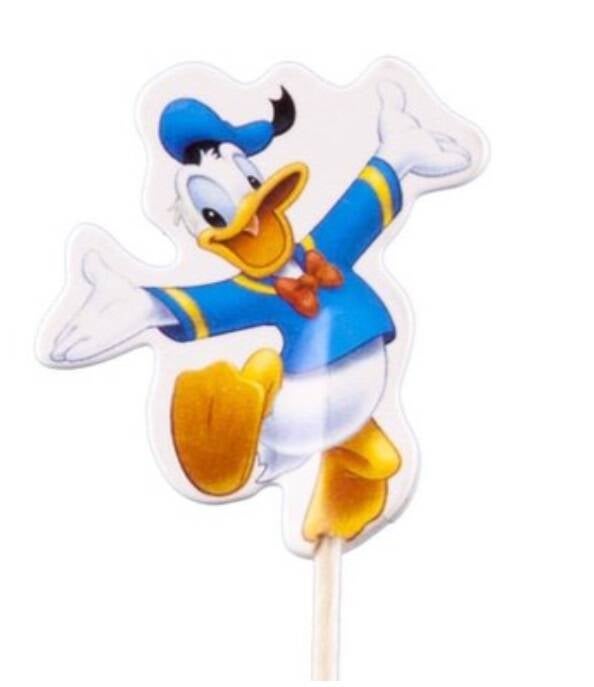 Topper di carta di 3,5x4cm circa con disegno su entrambi i lati + bastoncino a scelta da 4 o 20cm (vedi opzioni), da usare come decorazione ad es. per torte (Cake / Muffin Topper) o come spiedino per frutta o dolci.