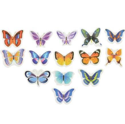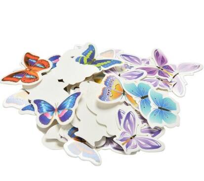 Forme di carta, disegnate su un lato e bianche sull'altro. Senza stuzzicadente. Perfette come decorazione da usare con cautela perché facilmente spezzabili.