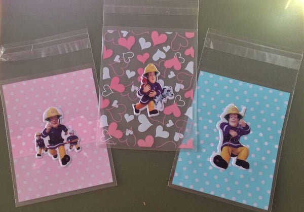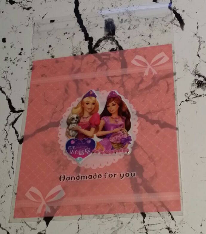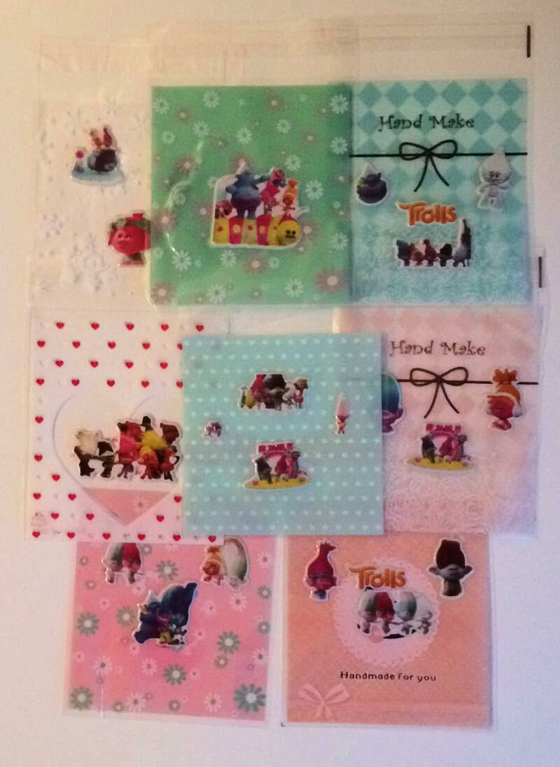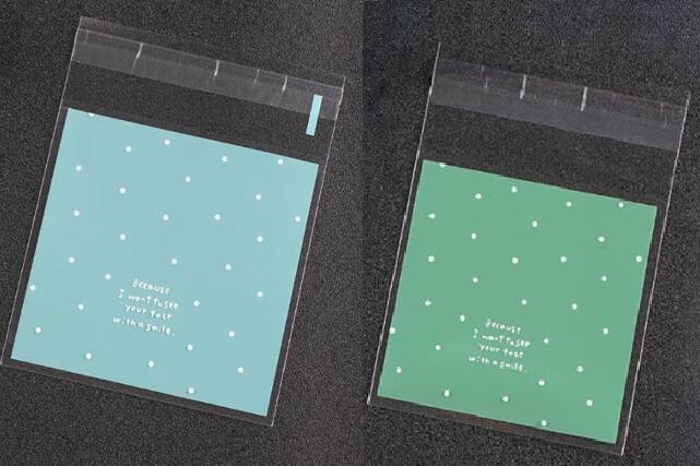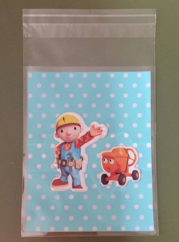 Sacchetti regalo trasparenti. Davanti adesivo del Tema scelto su sfondo del sacchetto scelto, dietroi sfondo in tinta unita opaca.