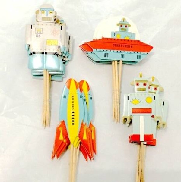 Topper di carta di 5cm circa con disegno su entrambi i lati + bastoncino a scelta da 4 o 20cm (vedi opzioni), da usare come decorazione ad es. per torte (Cake / Muffin Topper) o come spiedino per frutta o dolci.