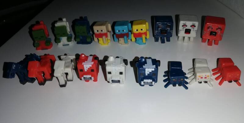 Figure di plastica dura, 2-3cm circa. Da usare come giocattoli (non adatti a minori di 3 anni) ma anche come decorazione, ad esempio sopra una torta.